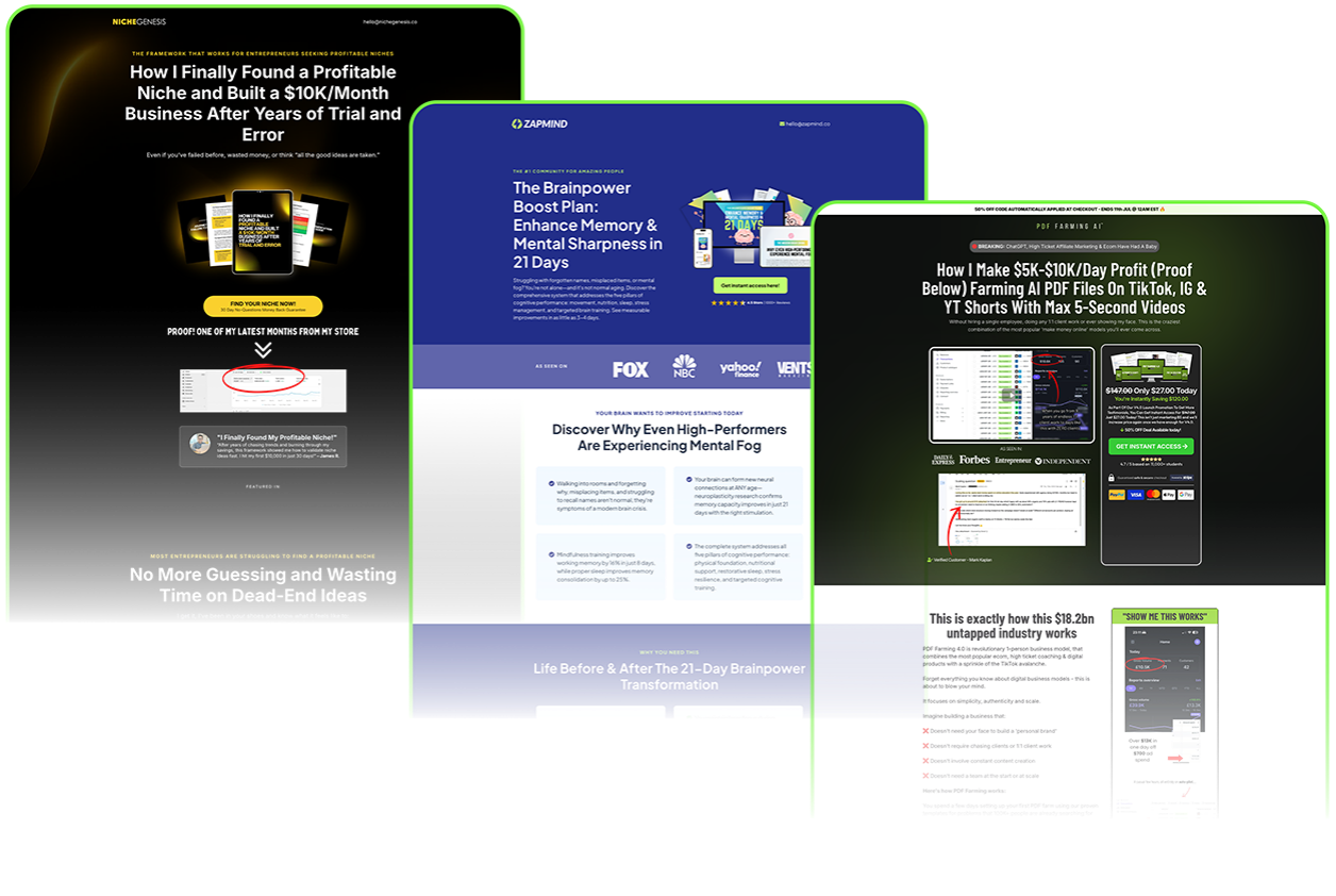 Multiple proven sales page templates that convert cold traffic into PDF buyers like clockwork.